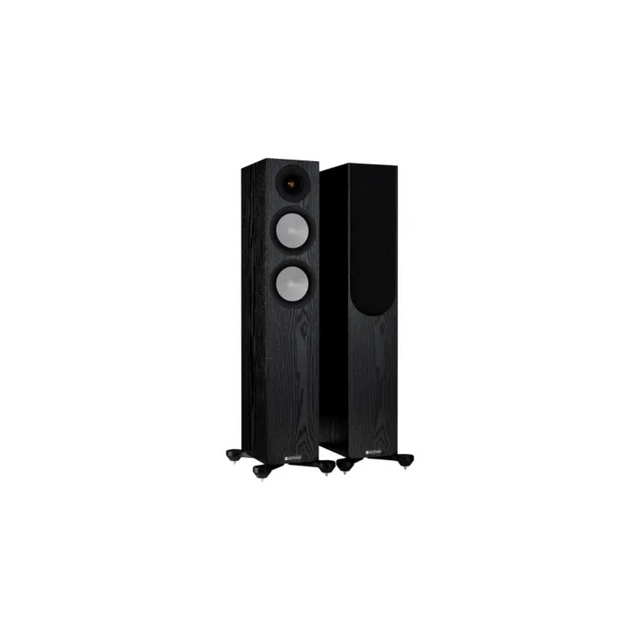 Brand Monitor Audio Model Silver 200 7G Series Silver 7th Generation Speaker Type Floor Standing Speaker (Pair) Design 2.5-Way Bass Reflex with Rear Port Tweeter 1 × 25 mm C-CAM Gold Dome Tweeter with Uniform Dispersion (UD) Waveguide II Mid/Bass Drivers 2 × 133 mm C-CAM Rigid Surface Technology II (RST II) Bass/Mid Drivers Frequency Response 35 Hz – 35 kHz Sensitivity 87.5 dB (1W/1m) Nominal Impedance 8 Ohms Recommended Amplifier Power 60 – 150 W Crossover Frequency 700 Hz / 3.5 kHz Cabinet Finish Black Oak Grille Magnetically Attached, Acoustically Transparent Dimensions (H × W × D) 885 × 165 × 272 mm (without plinth)