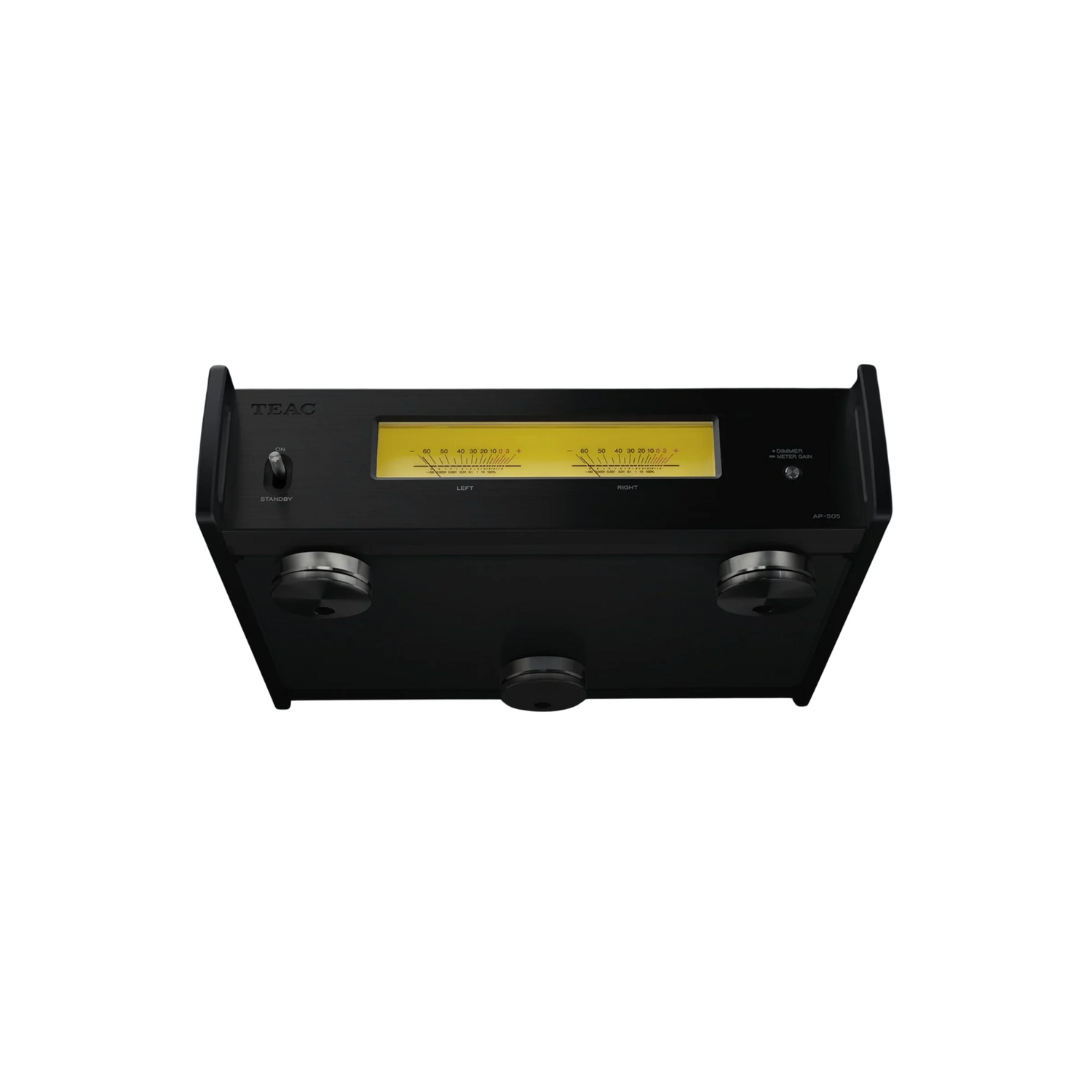 Front panel meters with dimmable lighting, classic look with ‘Pin-Point’ feet to reduce resonance.