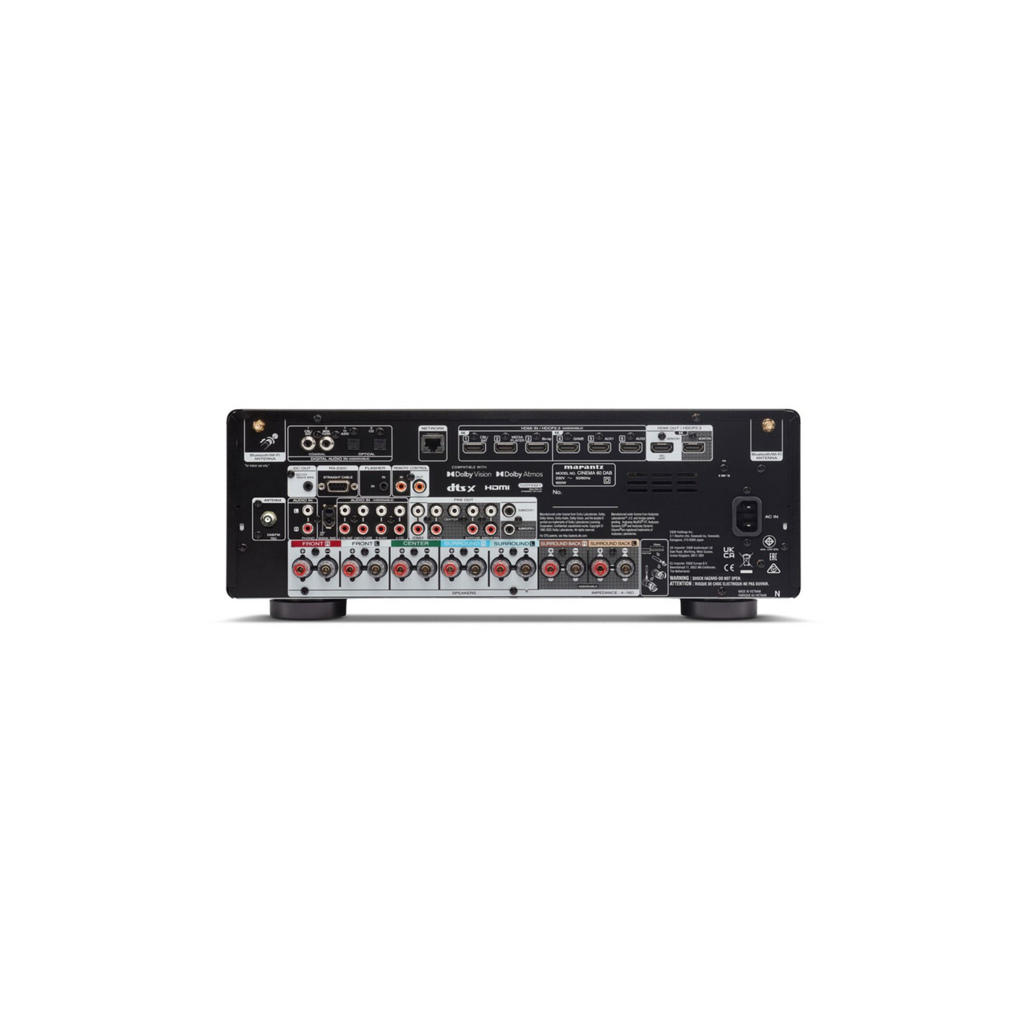 The Marantz Cinema 60 delivers an immersive home-theatre experience with support for Dolby Atmos and DTS:X, creating powerful, multi-dimensional sound that surrounds you from every direction.