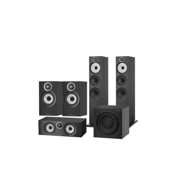The Bowers & Wilkins 603 S3 5.1 Package delivers cinematic surround sound with deep bass, crisp highs, and immersive audio performance — perfect for home theatres and music listening.
