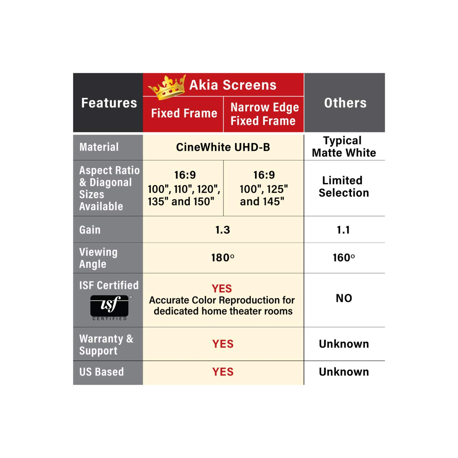 Akia Screens AK-FF110WH2 - 110 Inches CineWhite Fixed Frame Projection Screen (16:9) (8K / 4K Ultra HD 3D Ready HDR Compatible)