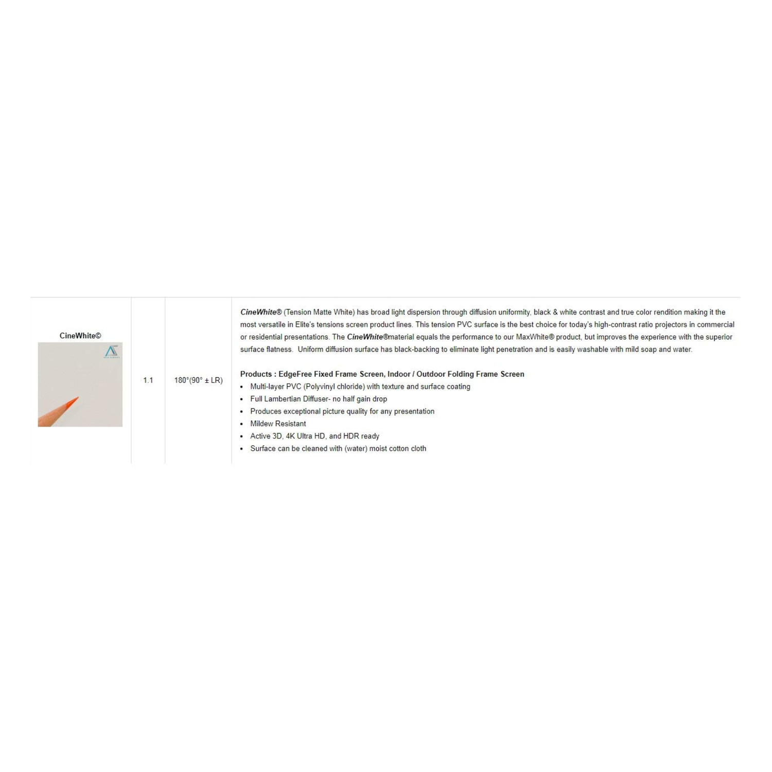 The CineWhite surface provides uniform brightness, vivid color reproduction, and wide viewing angles, ensuring consistent image quality regardless of where you’re seated.