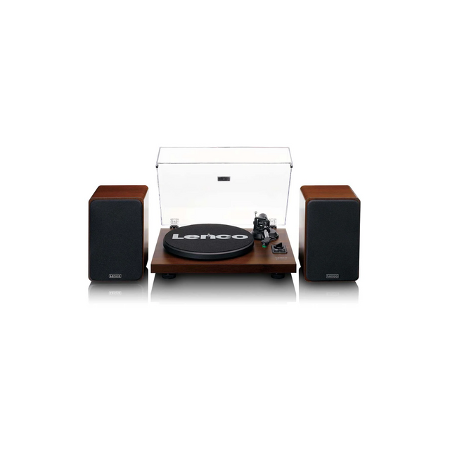 Brand Lenco Model LS-600WA Product Type Record Player with Bookshelf Speakers Drive System Belt-Drive Amplifier Built-in Stereo Amplifier Cartridge Pre-mounted Moving Magnet Cartridge Bluetooth Yes (Wireless Streaming to Speakers) Speeds 33⅓ RPM, 45 RPM Platter Aluminum Platter Tonearm Static Balanced Tonearm with Counterweight Adjustment Speakers 2 × Matching Bookshelf Speakers (Passive) Connectivity Bluetooth, RCA Line Out, Phono Out Material/Finish High-Quality Walnut Wood Finish Included Accessories Record Player, 2 Bookshelf Speakers, Dust Cover, RCA Cable, Power Supply Dimensions (Turntable) 420 × 360 × 140 mm Dimensions (Speakers) 150 × 200 × 190 mm each Weight Turntable: 5.5 kg, Speakers: 2.5 kg each Color/Finish Walnut Warranty 1 Year Manufacturer Warranty